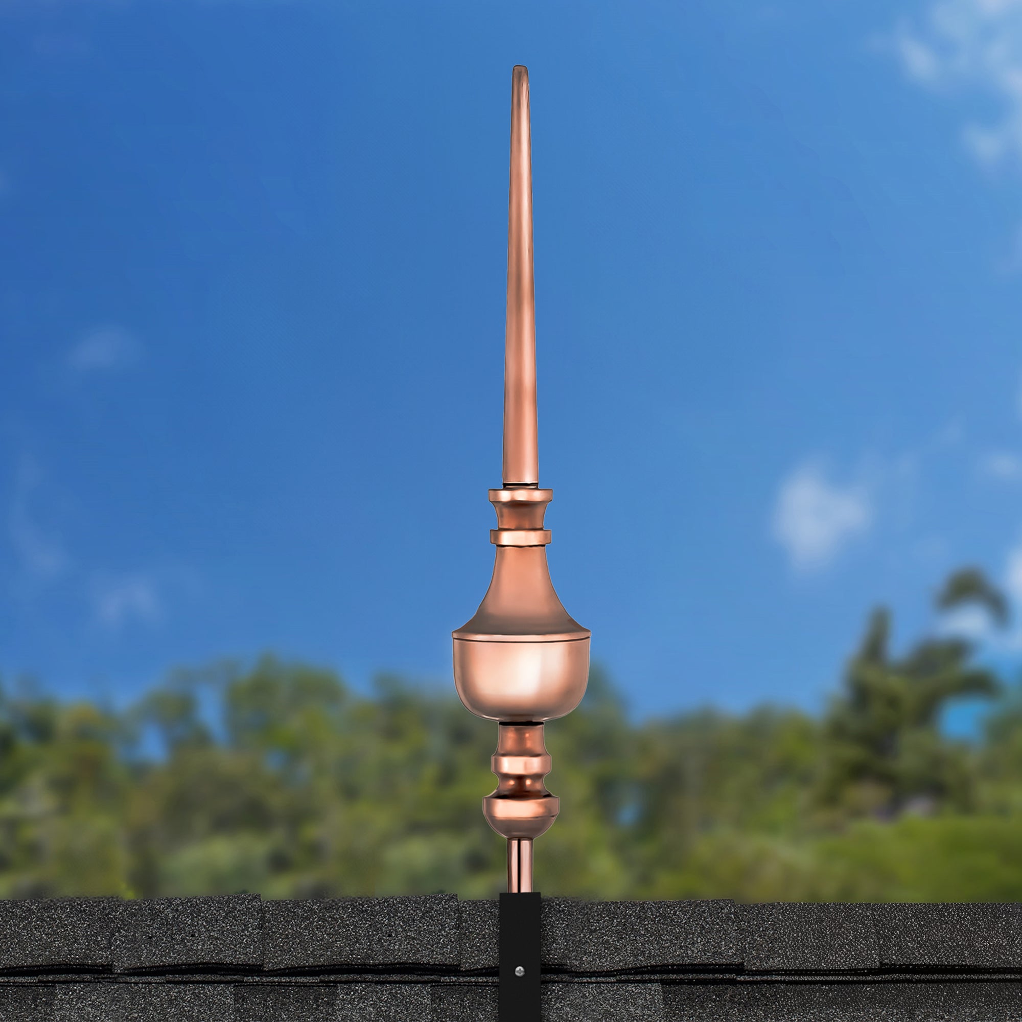 Our copper finials are designed for easy installation onto any roof or gable end. Choose between copper or steel roof mount for a hassle-free setup.
