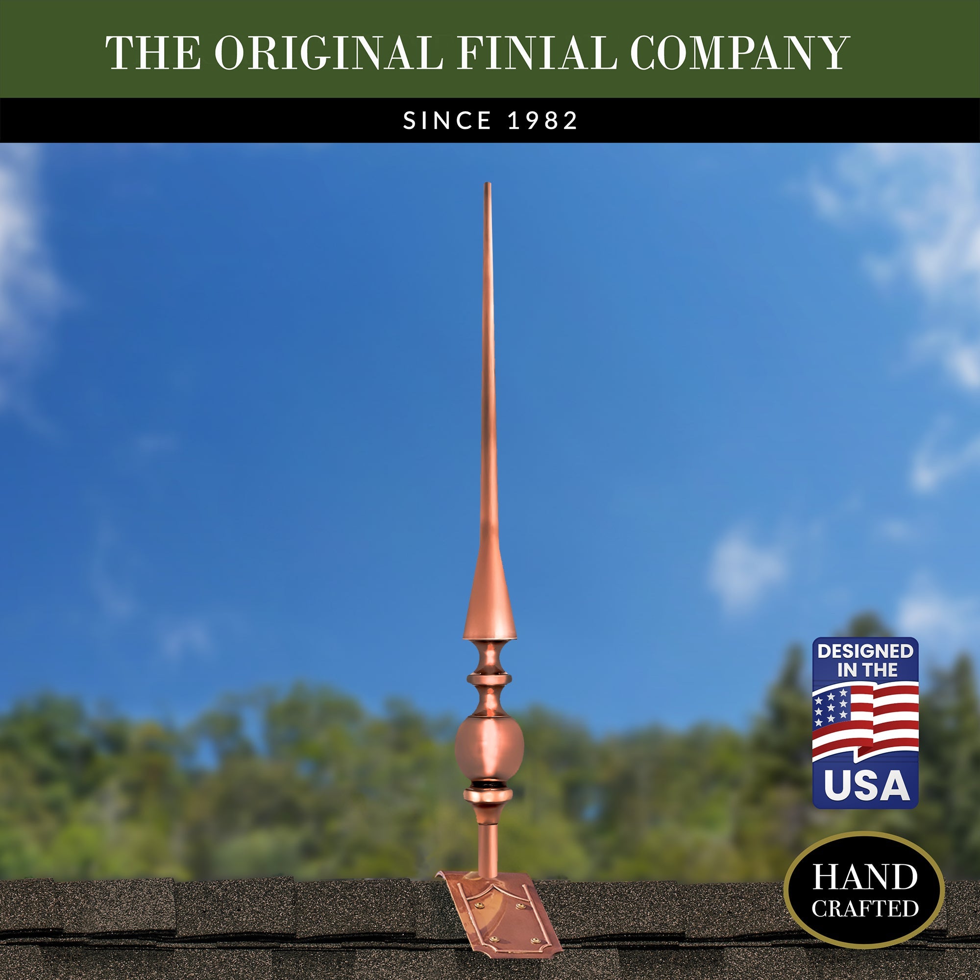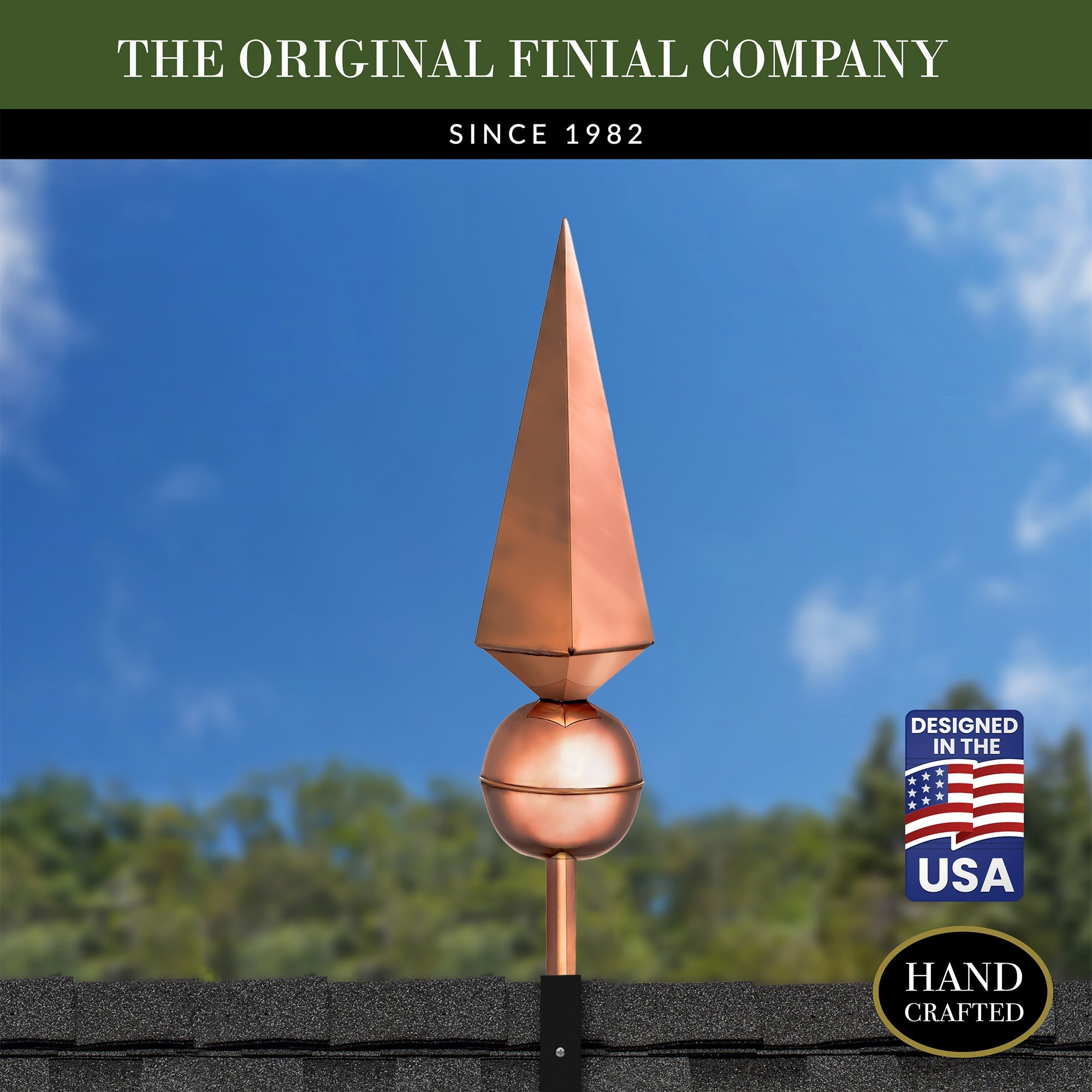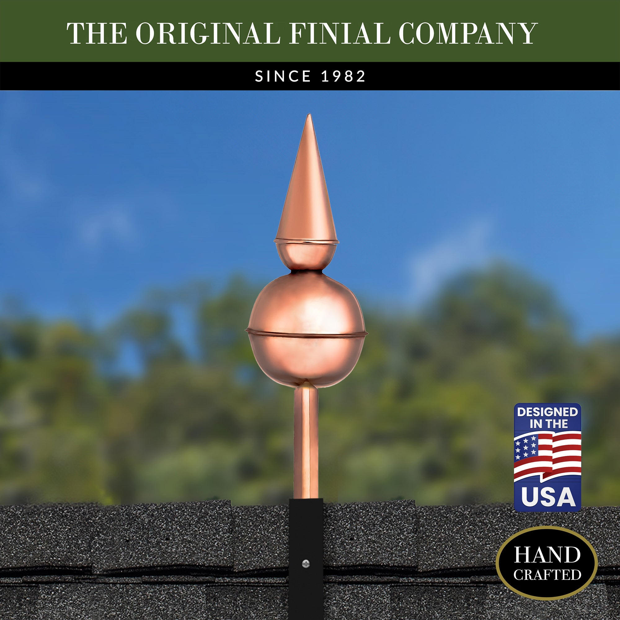 Our copper finials are designed for easy installation onto any roof or gable end. Choose between copper or steel roof mount for a hassle-free setup.