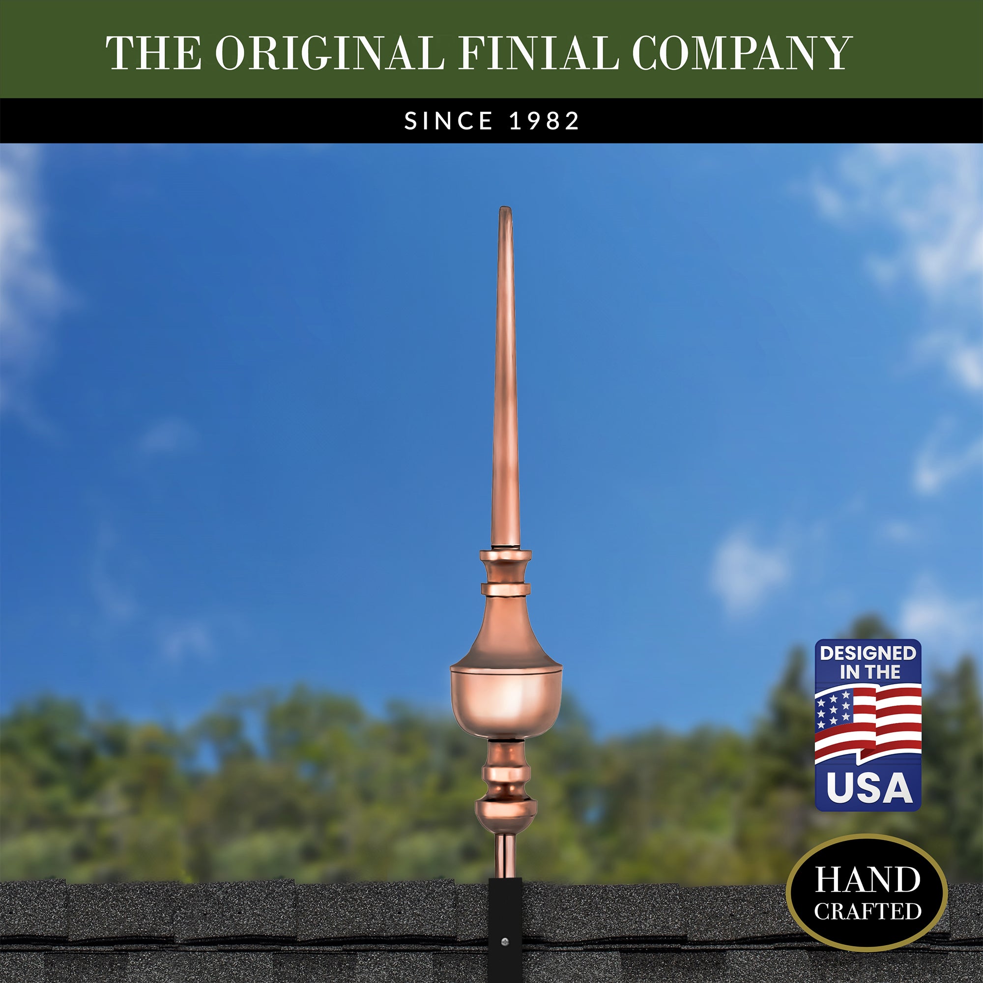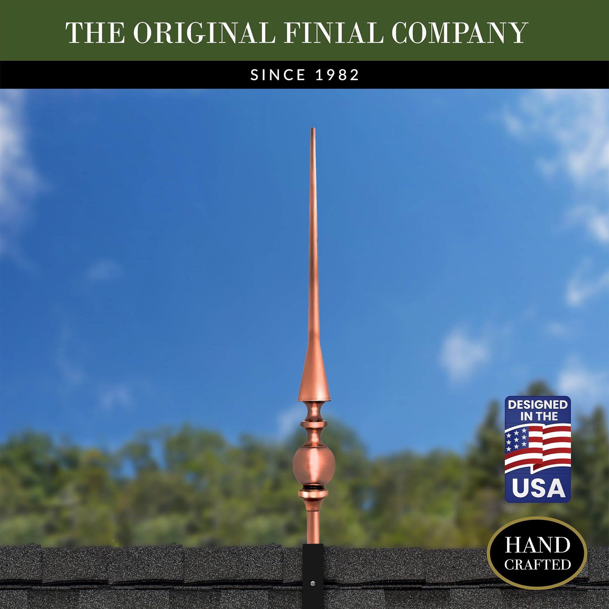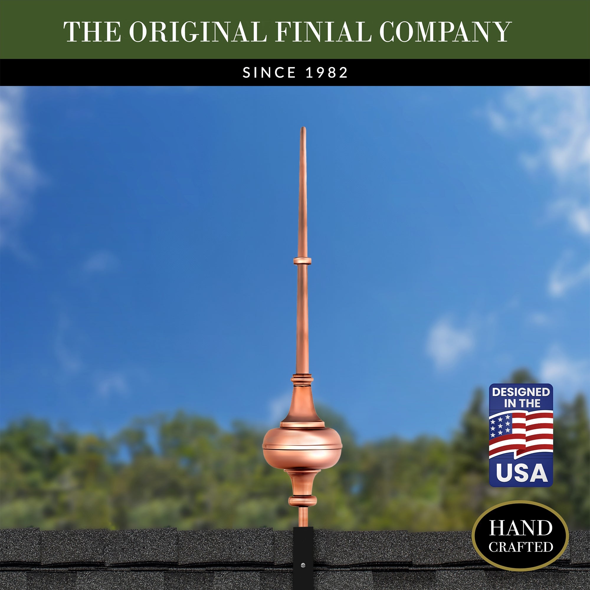 Our copper finials are designed for easy installation onto any roof or gable end. Choose between copper or steel roof mount for a hassle-free setup.