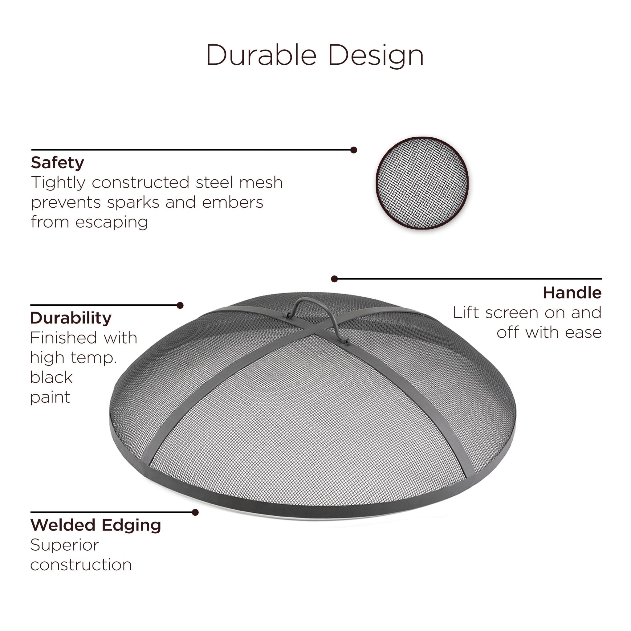 Hand-crafted by our skilled artisans using durable materials, these strikingly beautiful torches made of pure copper are built to last a lifetime. Our spark screens are made of durable stainless steel or powder coated steel, both include lifter rods to easily add more wood to your fire.