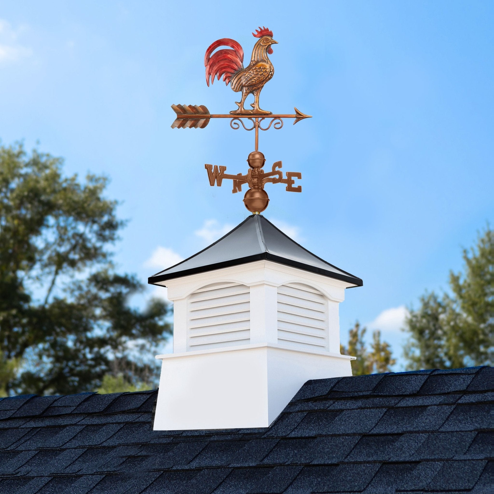 18" Square Coventry Vinyl Cupola with Black Aluminum Roof and Red Rooster Weathervane by Good Directions