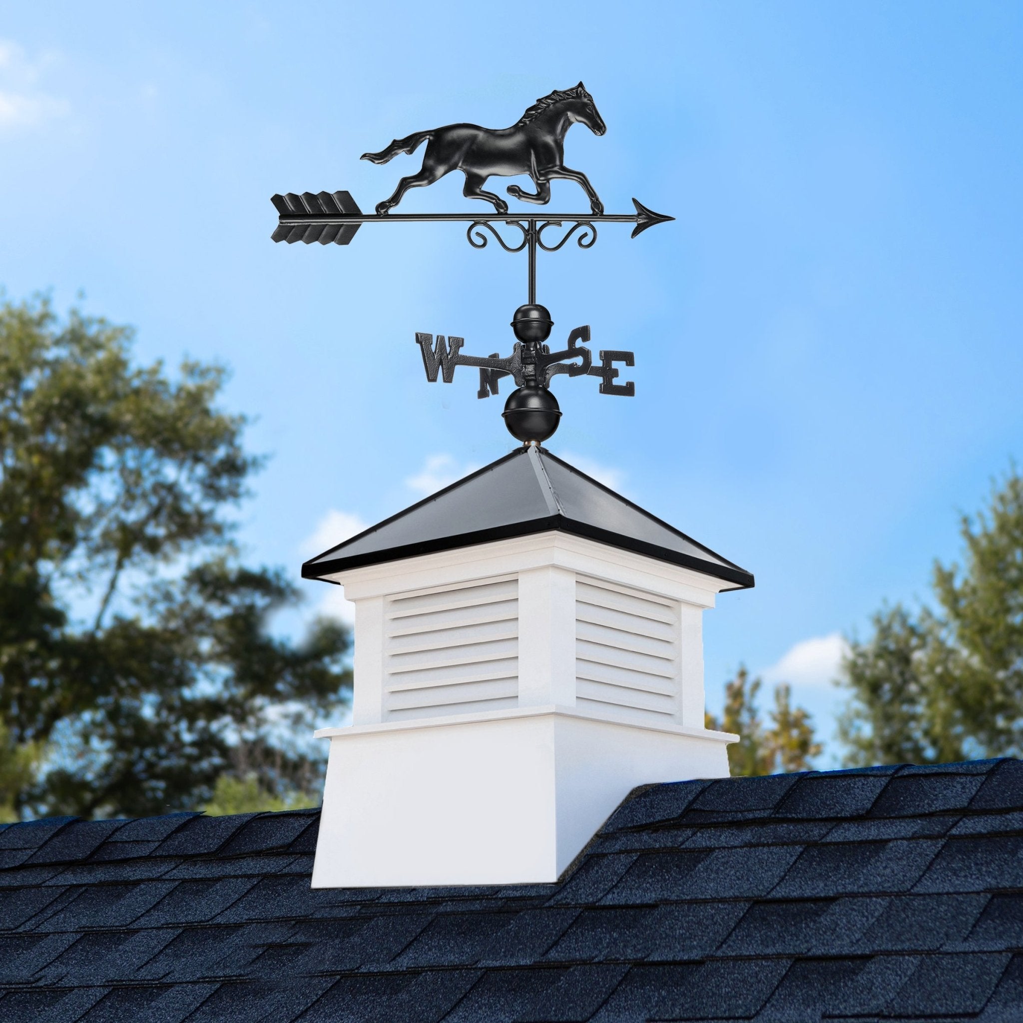 18" Square Manchester Vinyl Cupola with Black Aluminum roof and Black Aluminum Horse