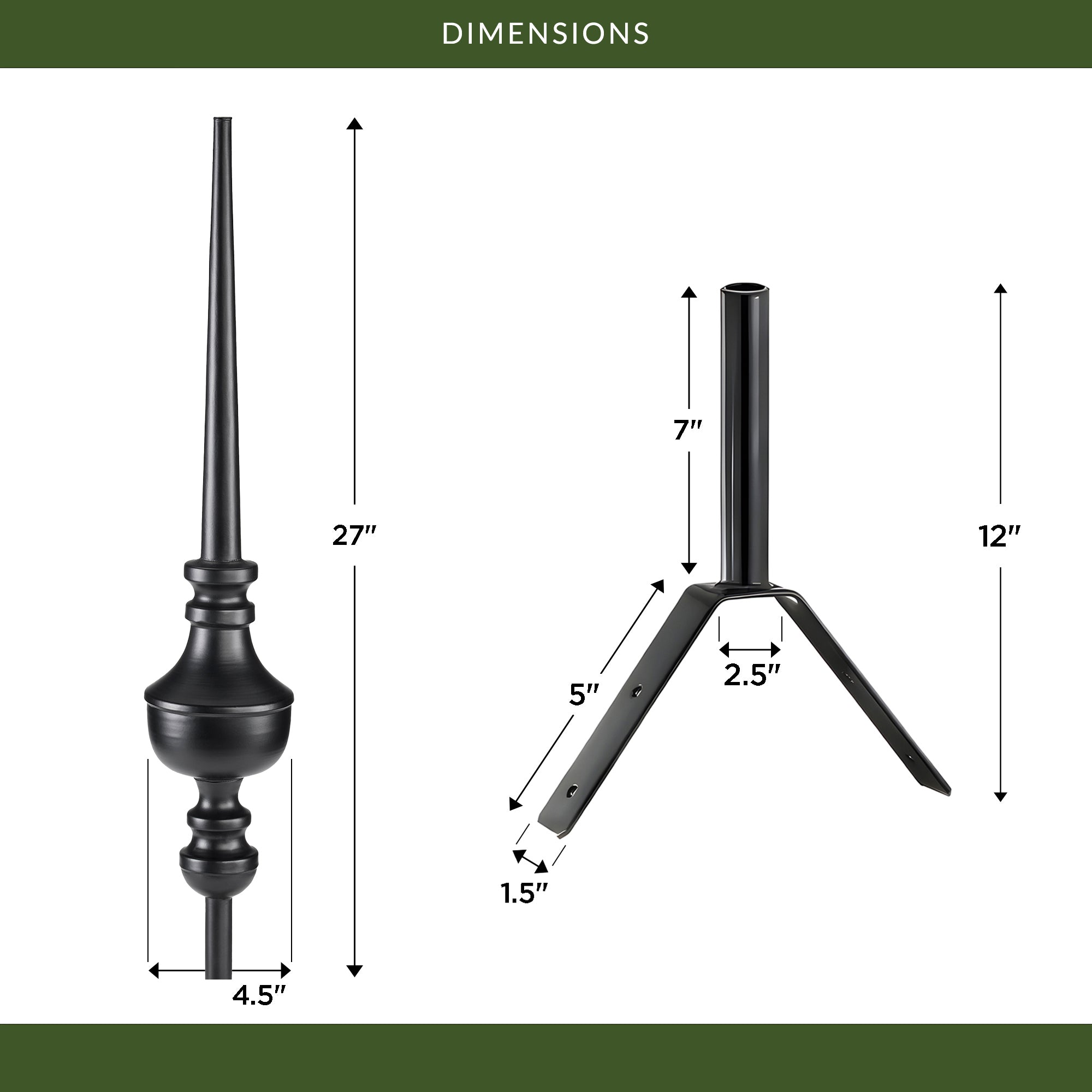 27" Victoria Black Aluminum Finial
