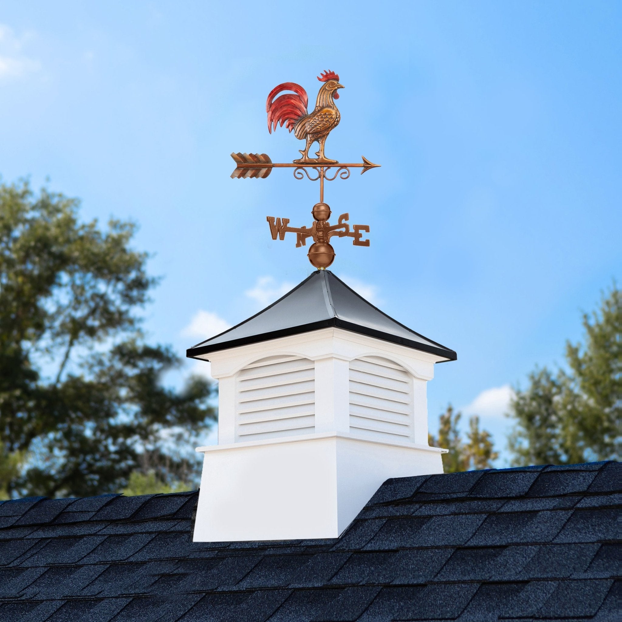 30" Square Coventry Vinyl Cupola with Black Aluminum Roof and Red Rooster Weathervane by Good Directions