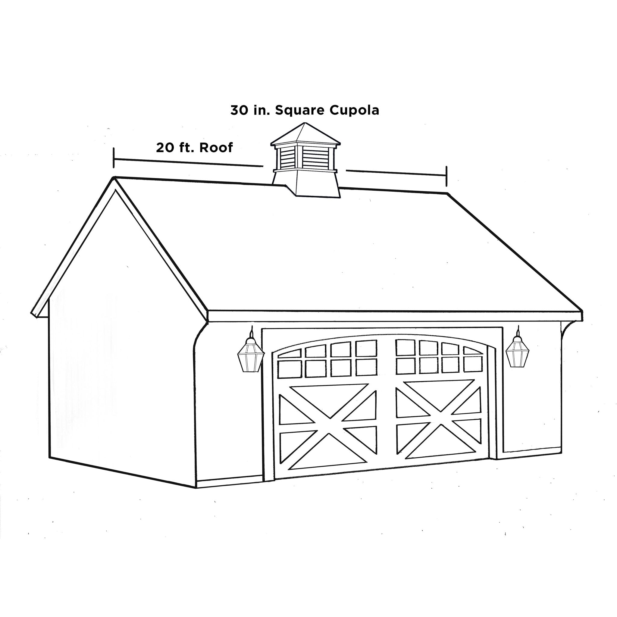 • Sizing & Features: DIMENSIONS – Square size measured at roofline. Fits up to a 10/12 pitch roof (most roofs). When calculating the size of your cupola, use our steadfast builder's rule of thumb: 1.5 inches of cupola width for every foot of unbroken roofline. See photo for more information.