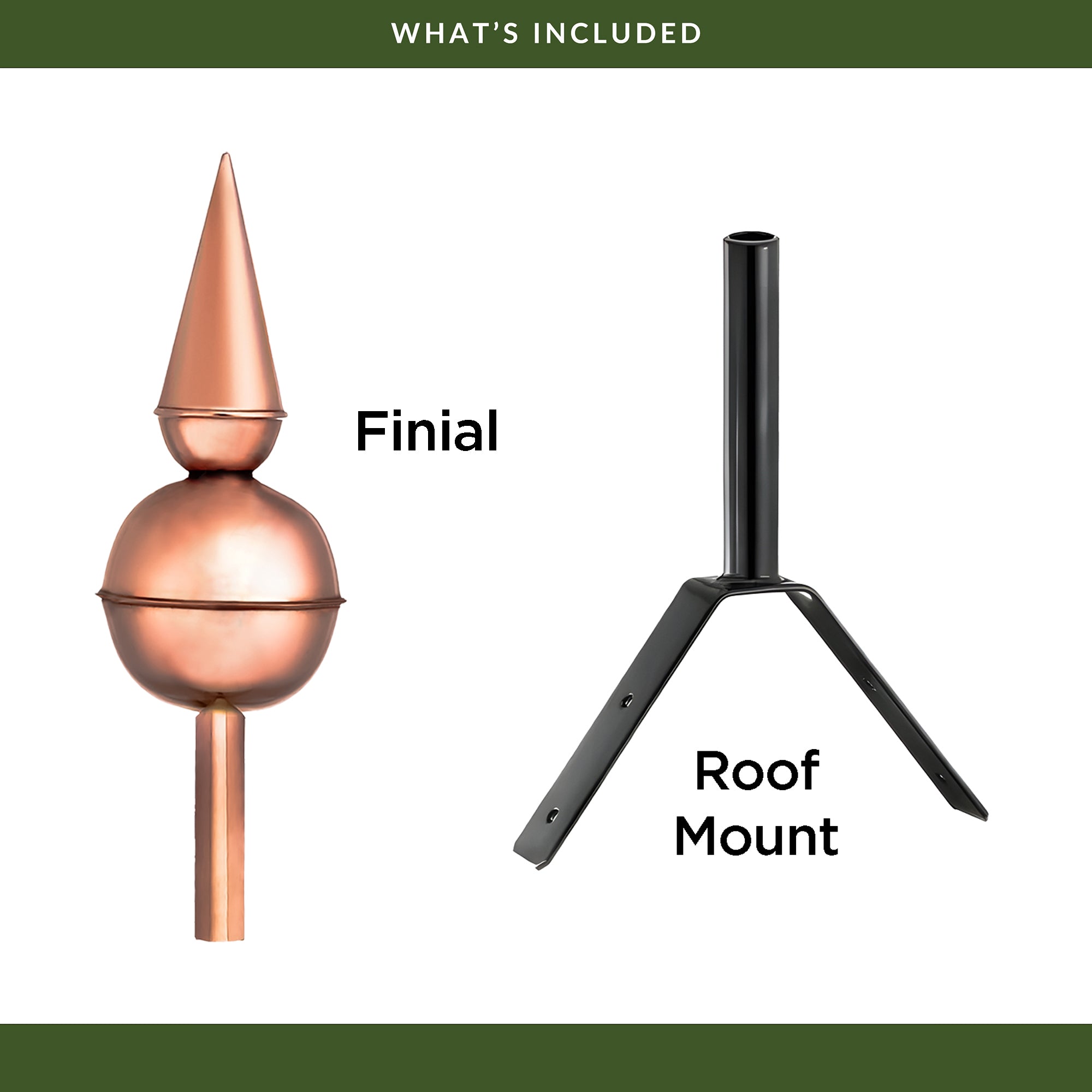 The finial is gorgeous; easy to install! The quality and craftsmanship are outstanding. I now have four copper finials; they really look sharp on my brick Cottage.