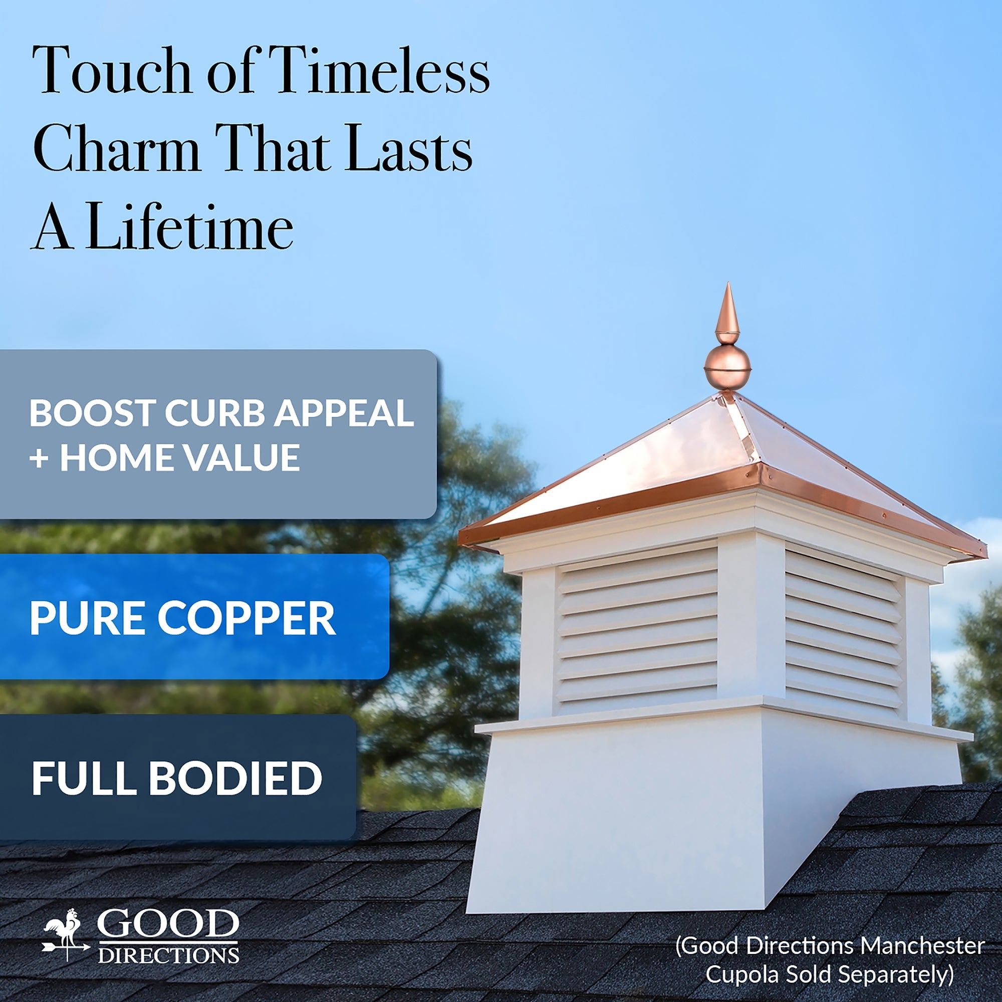 Only the finest 22-gauge pure copper goes into every Good Directions finial.  Designed by American artisans, each piece is handcrafted to ensure even the smallest detail meets our standards of quality.