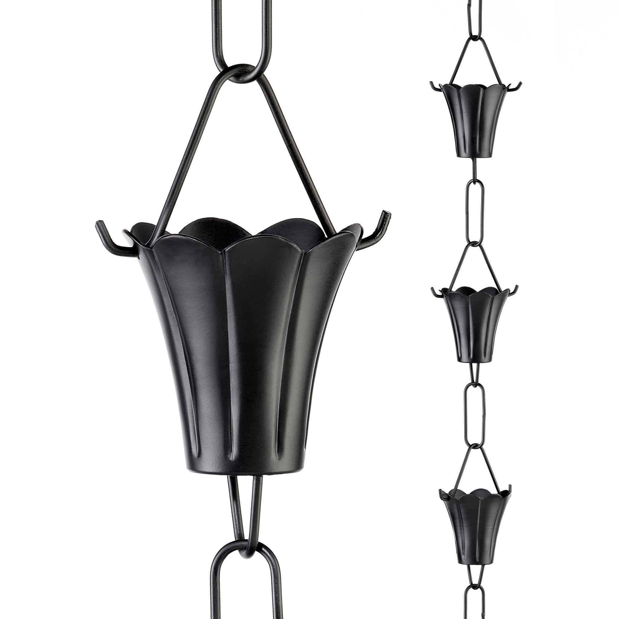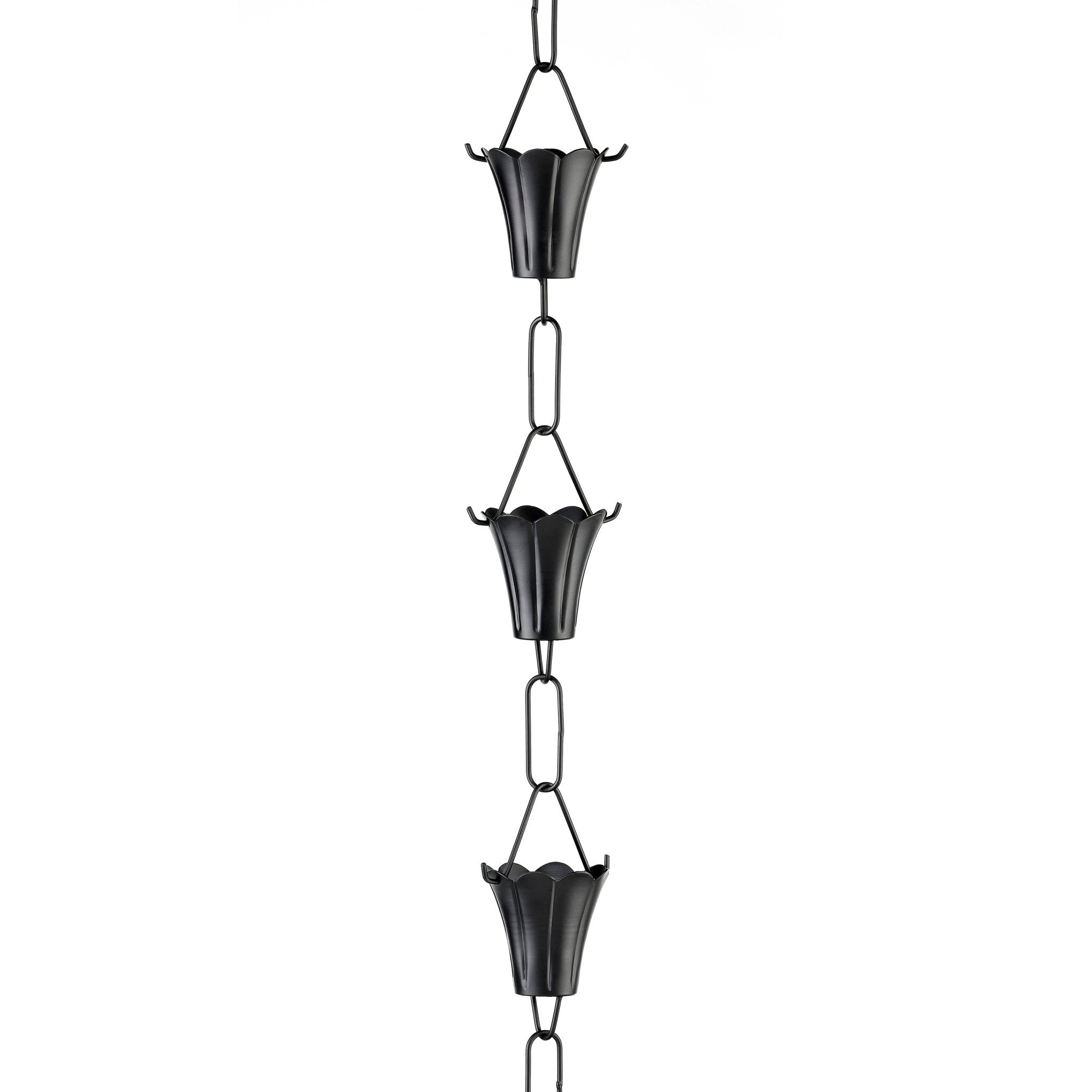Fluted Flower Rain Chain Black - 8.5 ft., with 11 Large Cups