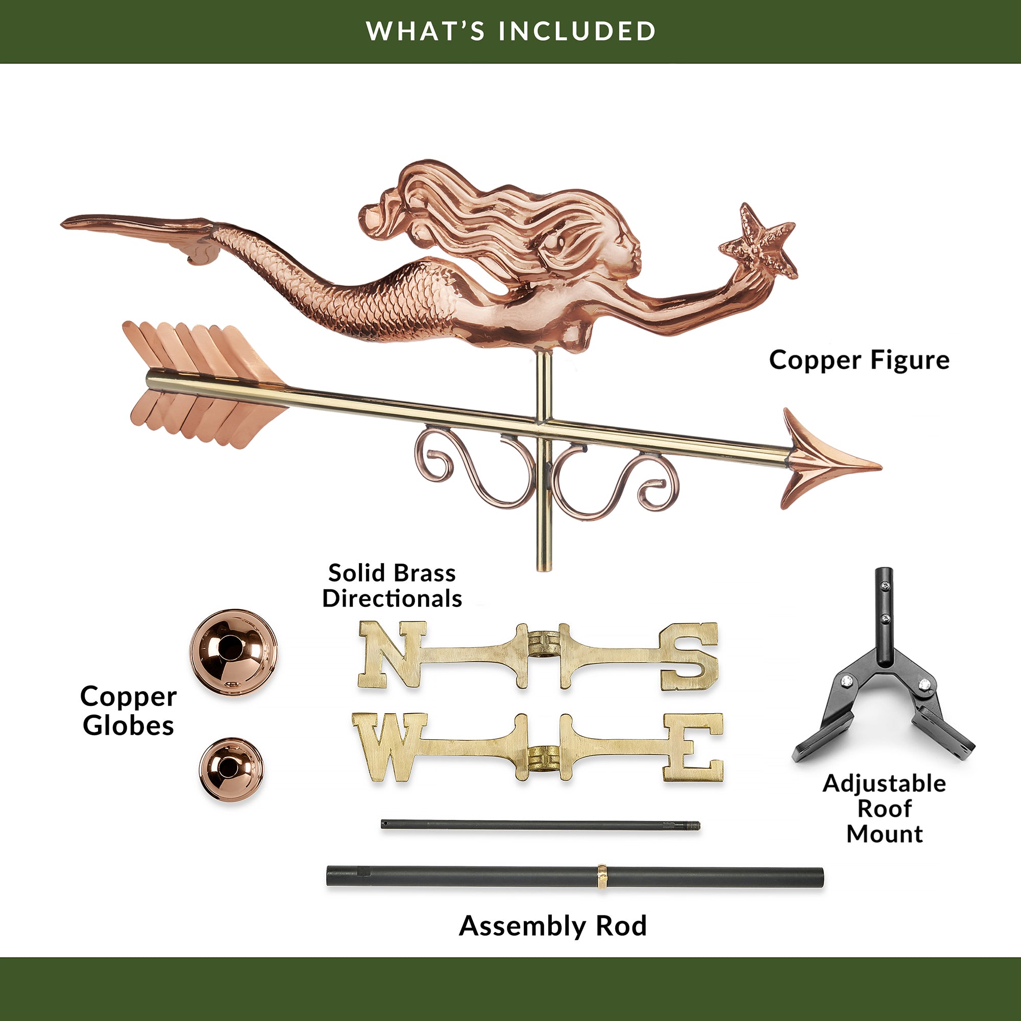 • 100% COPPER: This weathervane is made of 22-gauge heirloom-quality pure copper that will age naturally over time.